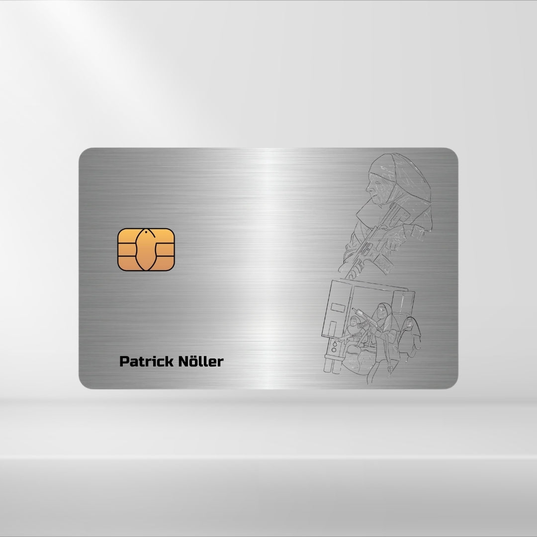 Du Suchst das Design raus welches dir gefällt, Teilst uns deinen Gravierwunsch mit und bekommst die Karte + DIY-Kit um deinen Chip in 2 Minuten Kinderleicht umzubauen